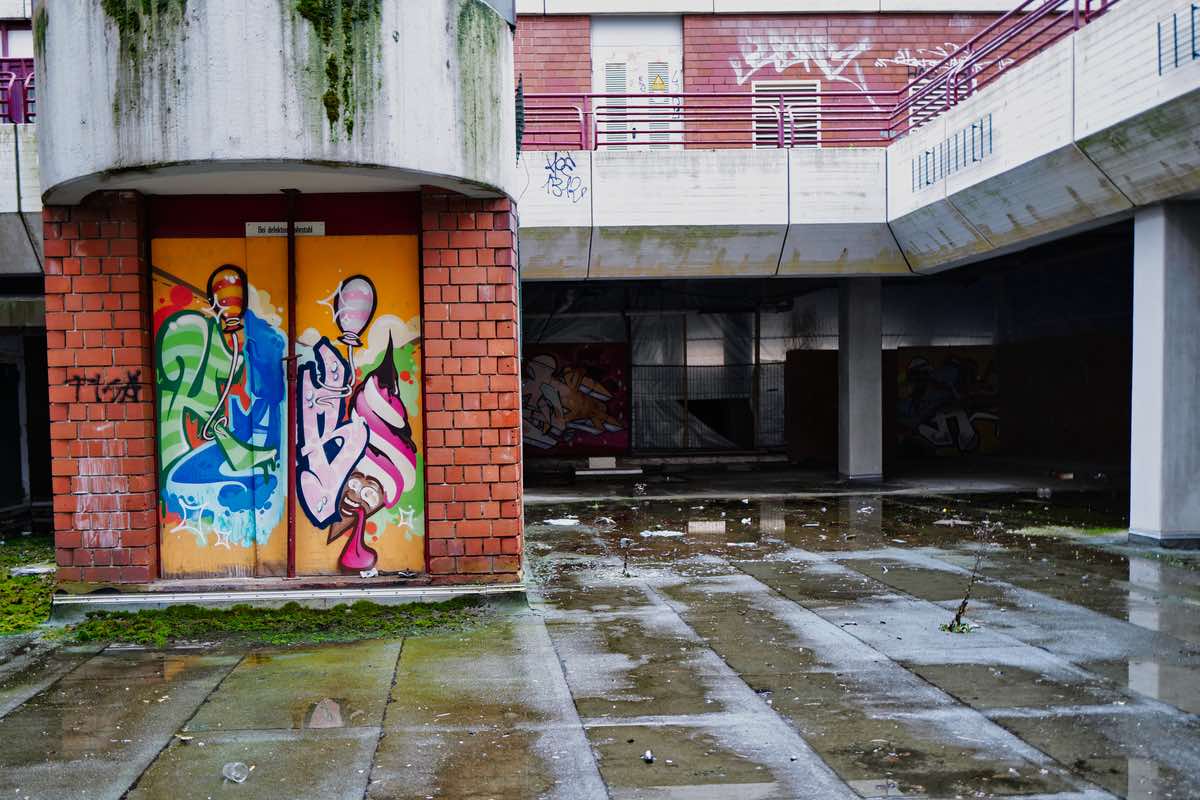 Nachdem über die Jahre diverse Heuschrecken (zuletzt der mittlerweile per Haftbefehl gesucht Lars Windhorst) die letzten Werte vernichtet und immer wieder Versprechungen nach einer Wiederbelebung der „Stadt in der Stadt“ gebrochen haben, ist es nun nur noch eine gespenstische, verwinkelte Ruine. Hässlich, aber irgendwie fotogen.