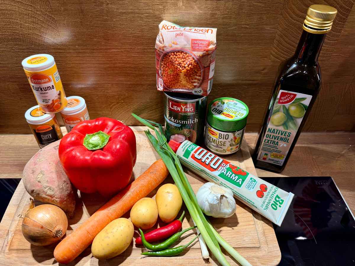 - Ich habe nur eine kleinere Süßkartoffel bekommen und daher mit normalen Kartoffeln "gestreckt". Grundsätzlich kann man hier alles Mögliche noch mit hineinschmeißen