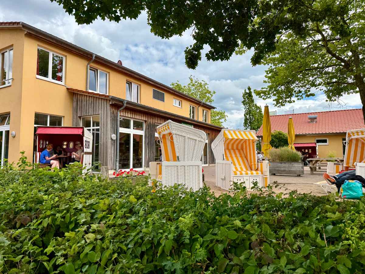 Uns gefällt der direkt am Stemmer See gelegene mittelgroße Platz sehr gut. Ein breiter – zeitweise von der DLRG bewachter – Sandstrand sowie Schwimmkörper, teilweise mit Kletterwand, bieten reichlich Möglichkeiten und eine kleine Insel lässt sich mittels Seilfähre auch trockenen Fußes besuchen. Gerade für uns als Zelter und bei dem bescheidenen Wetter diesen Sommer ist es immer sehr willkommen, wenn Indoor-Spielmöglichkeiten und eine gemeinschaftliche Camping-Küche geboten sind. Beides ist hier der Fall. Zwei Kickertische und eine Tischtennisplatte sowie gut ausgestattete Kochmöglichkeiten lassen einen auch die ein oder andere Regenzeit gut überbrücken. Einen Tag mussten wir dann aber dennoch im nahegelegenen Hallenbad verbringen. Vielleicht haben wir nächstes Jahr mal wieder einen verlässlicheren Sommer. Wer nicht selbst kochen will, hat die Wahl zwischen Fast Food vom Imbiss (Currywurst, Pommes, Nuggets) und Crêpe. Tretboote, Fahrräder und Kettcars können ausgeliehen werden. Für Letzteres empfiehlt sich die Online-Reservierung. Ansonsten gibt es natürlich auch hier das obligatorische Hüpfkissen auf dem Spielplatz, Brötchen-Service (auch online) und einen Minimarkt. Die Senitärhäuser sind sauber und gut ausgestattet.
